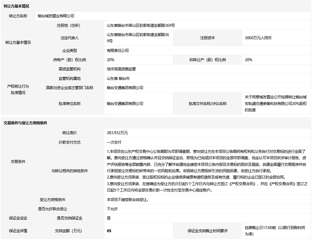 • 轉(zhuǎn)讓方:煙臺城發(fā)置業(yè)有限公司