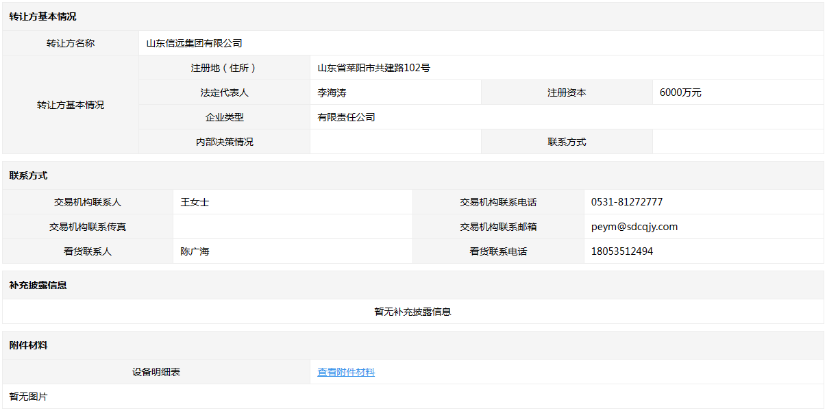 山東信遠集團有限公司持有的舊設備一宗