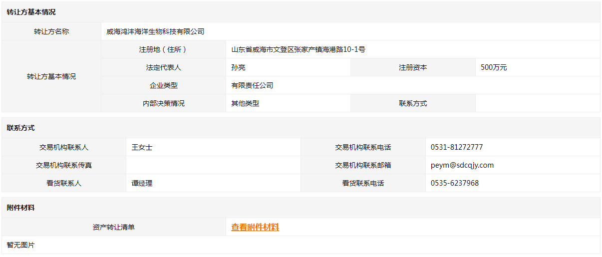 • 轉(zhuǎn)讓方:威海鴻灃海洋生物科技有限公司