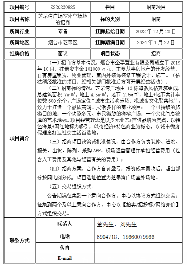 • 掛牌起止日期:2023年12月28日至2024年1月22日