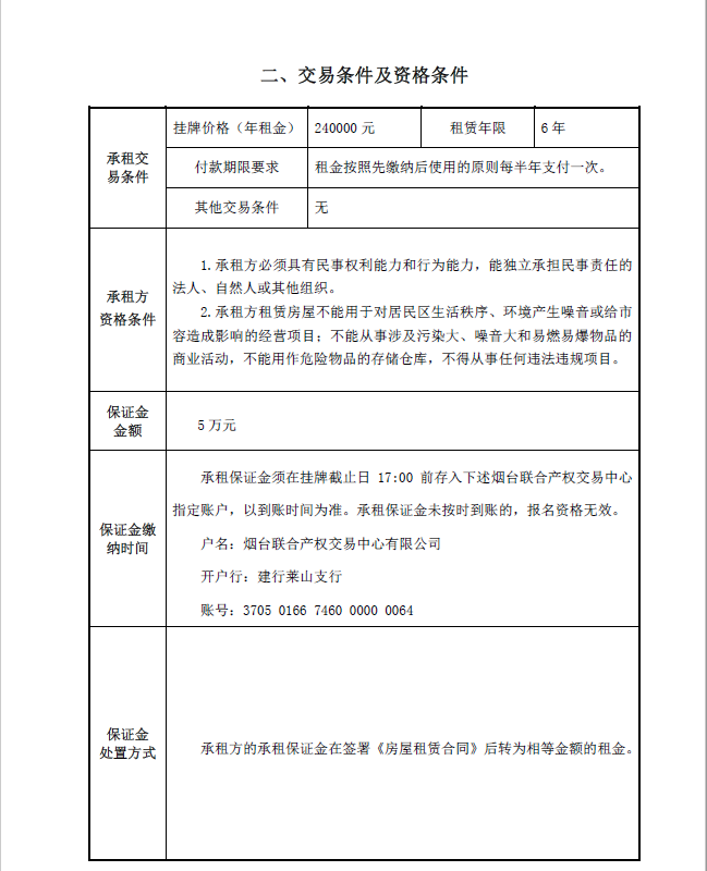 煙臺市南大街267號一樓東側(cè)門頭房招租公告