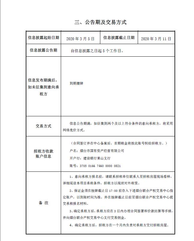 • 掛牌起止日期:2020年3月5日至2020年3月11日