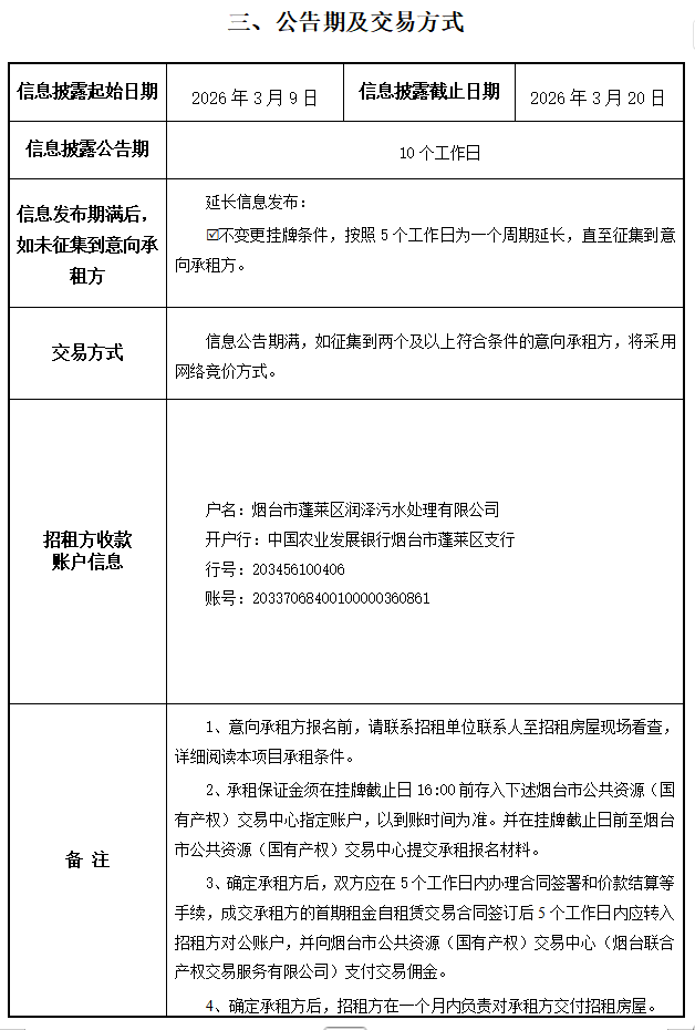 掛牌起止日期:2026年3月09日-2026年3月20日